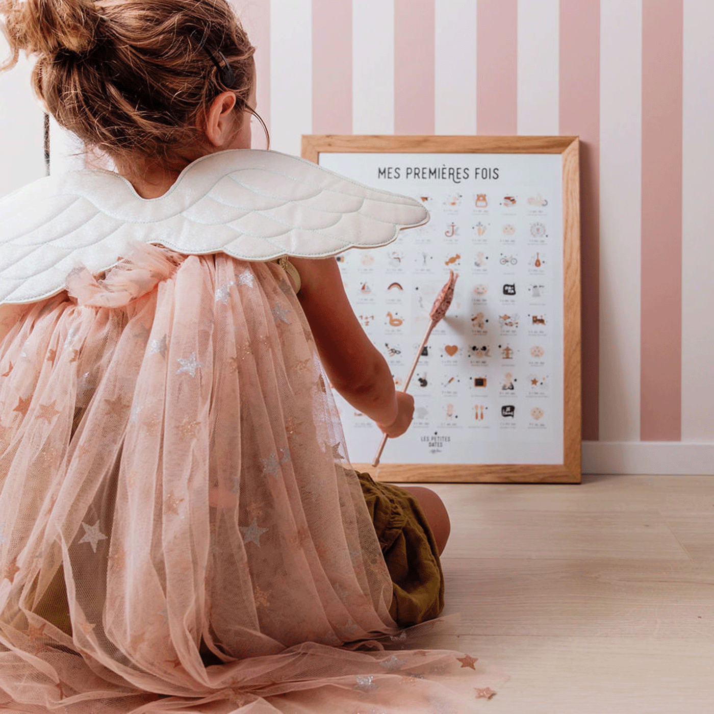 Inclus un tampon dateur et encrier pour inscrire toutes les premières fois de bébé