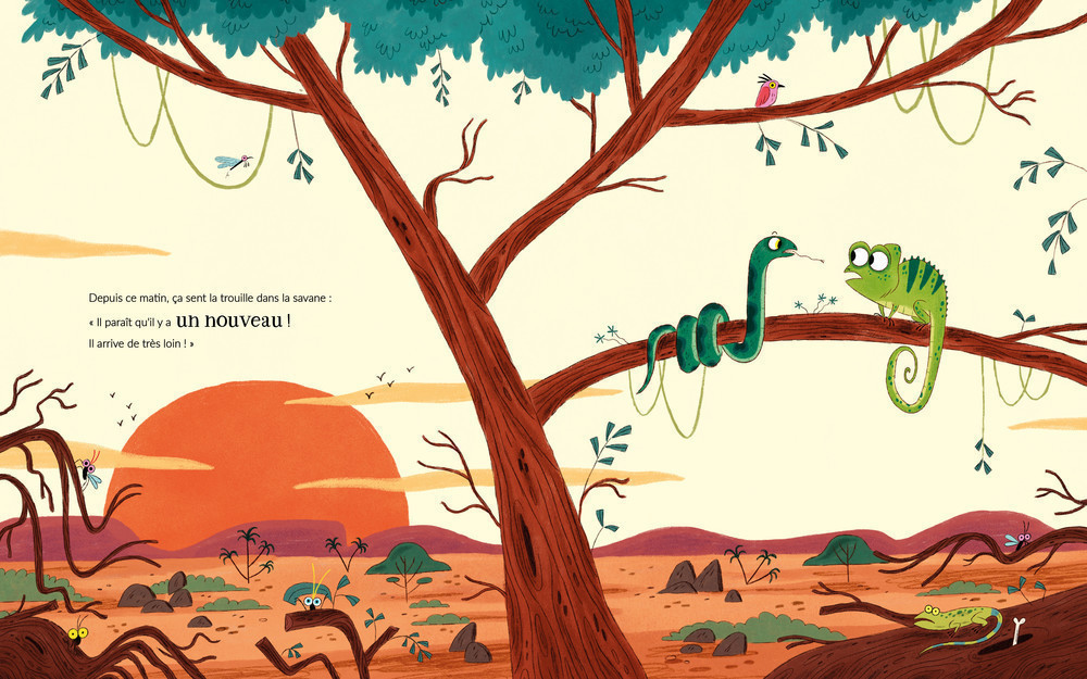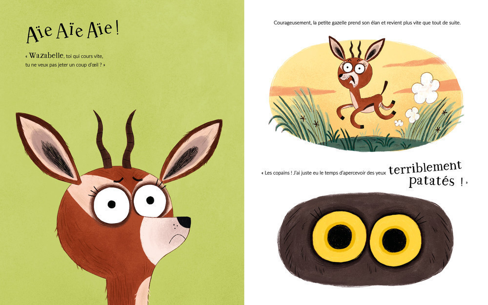Ce matin, ça sent la trouille dans la savane ! Les animaux sont inquiets : il paraît qu’il y a un nouveau… Et qu’il a des oreilles férocement pointues, Et des yeux terriblement patatés, Aïe aïe aïe, c’est sûr, il va nous boulotter ! Un récit rythmé dans lequel Christine Naumann-Villemin bouscule la couardise et les préjugés et orchestré avec talent par la dessinatrice Ana Duna, et sa troupe d’animaux délicieusement ahuris. Le lauréat du prix des Incorruptibles 2021-2022, dans la catégorie « Maternelles » !