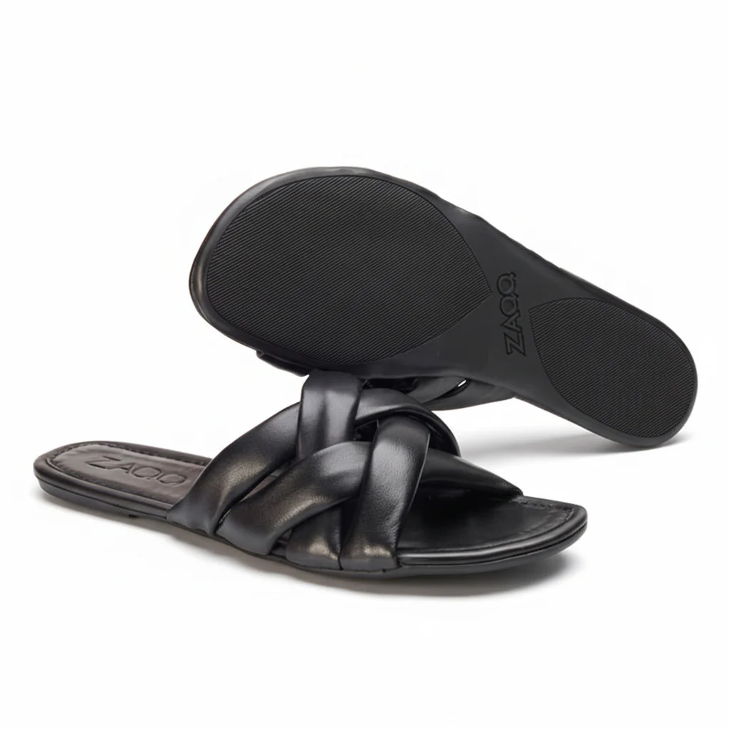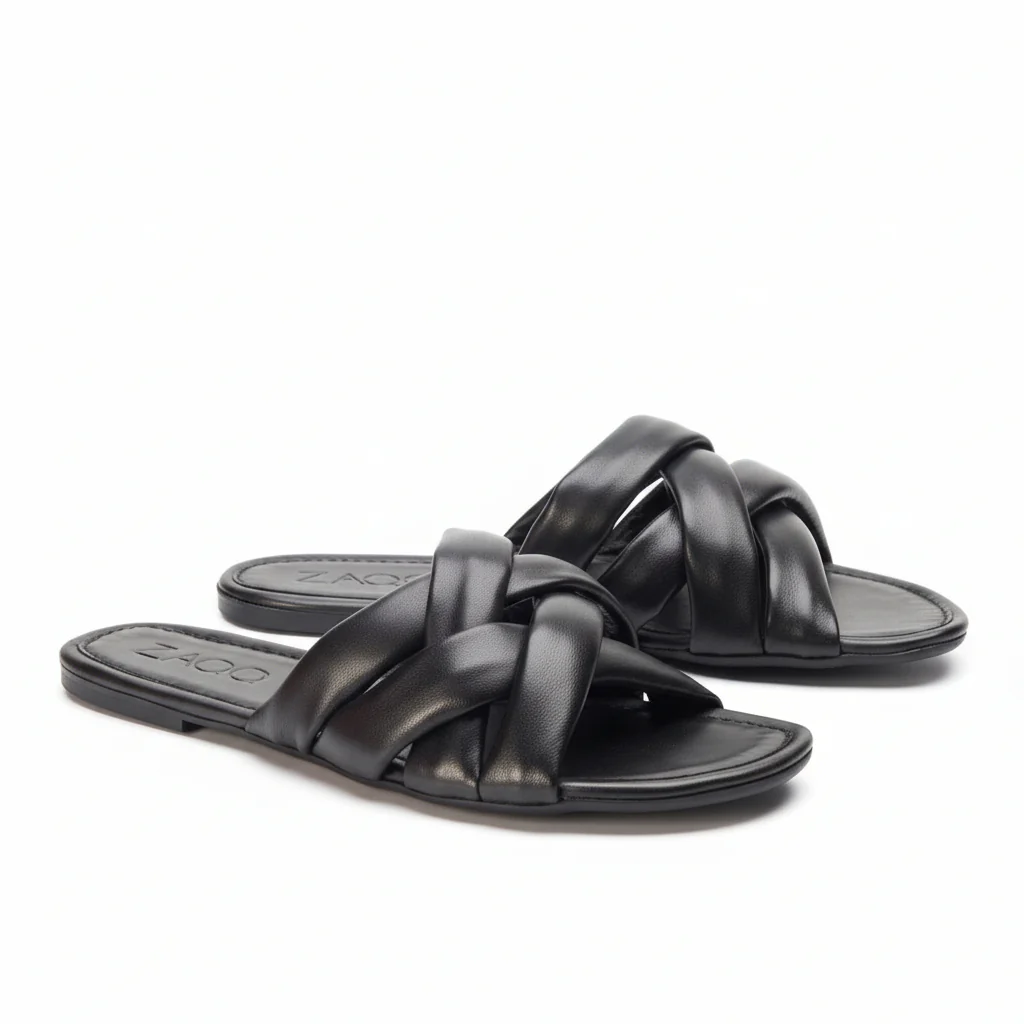 This slip sandal works with the braided strap feminine and is so comfortable that every step becomes a pleasure. On the beach promenade or through the City, AlaQ is there!