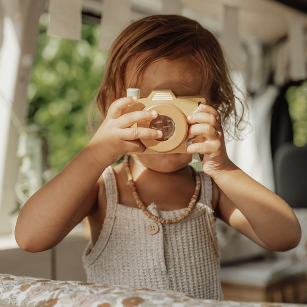 Vos kids pourront capturer les moments les plus précieux ! Maman, Papa, Papi, Mamie ou sa peluche préférée ! Avec cet appareil photo en bois, chaque instant peut être immortalisé. Fabriqué en bois, cet appareil photo vintage est muni d’un bracelet, facilitant le transport par vos tout-petits.
