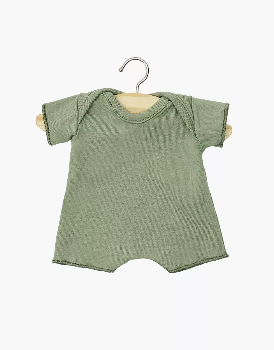 Body shorty en jersey kaki pour poupée Minikane 28 cm. Confection française, doux et facile à enfiler.