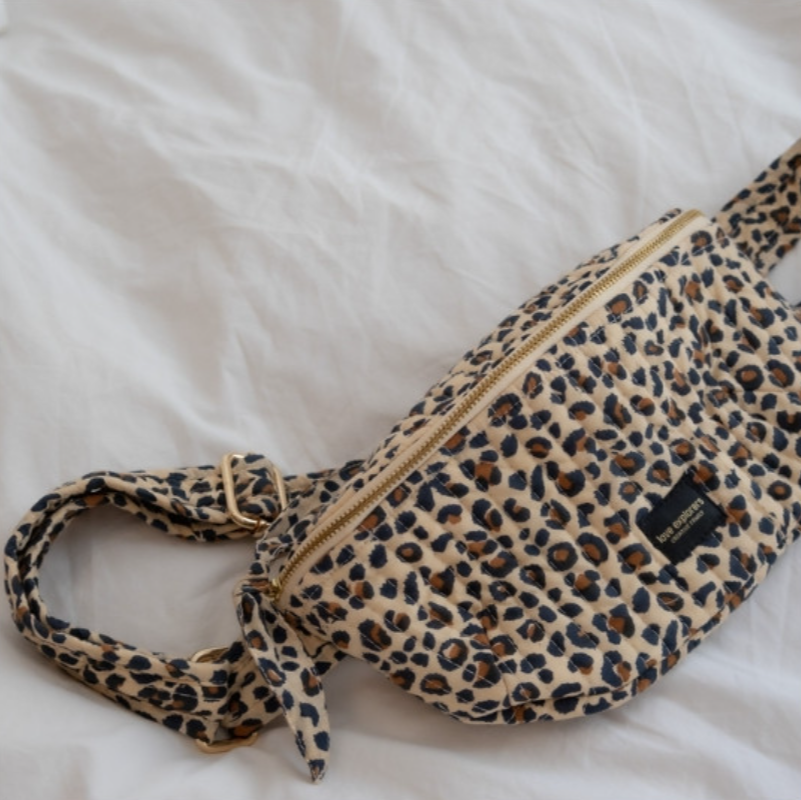 Banane tendance en motif léopard beige, idéale pour un look urbain et stylé. Love Explorers.
