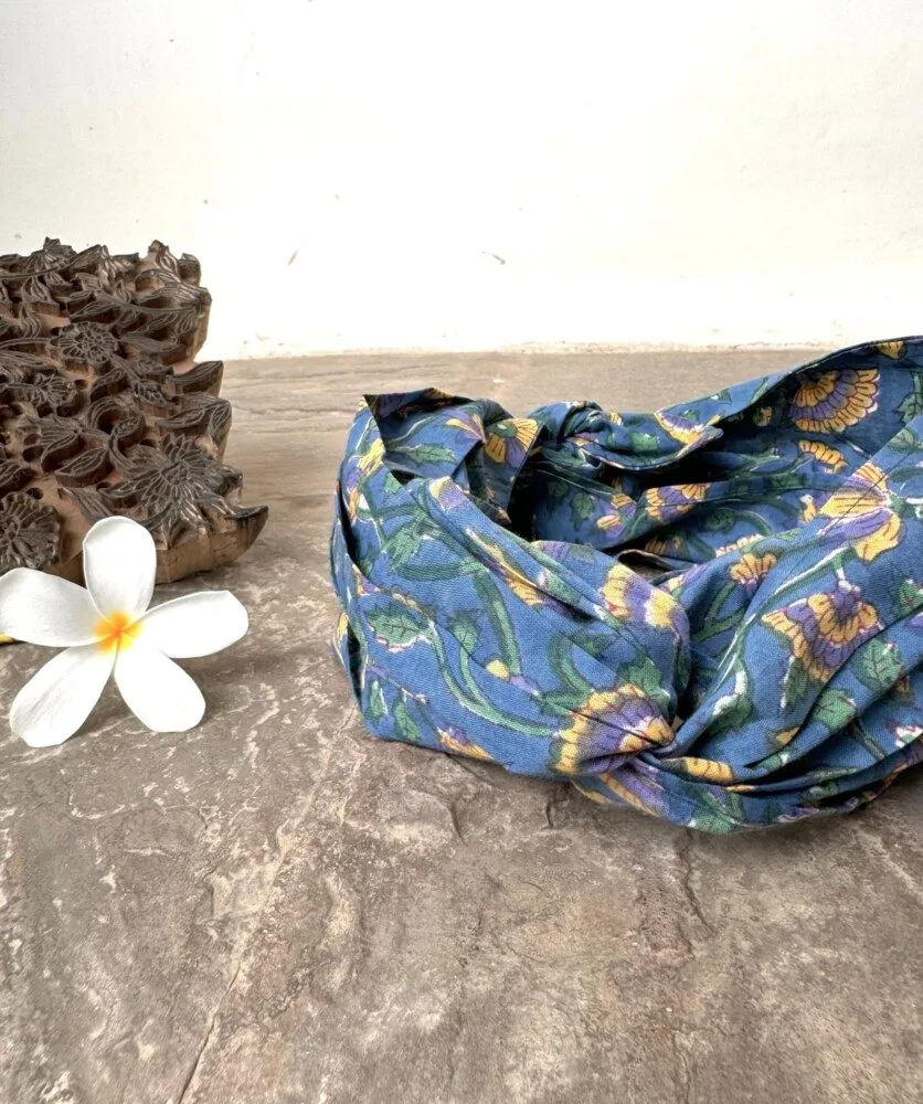 Bandeau multi-usage de 147 cm signé Bellemme, à porter cheveux, taille ou en foulard. Disponible chez Bonnie Bonnie.