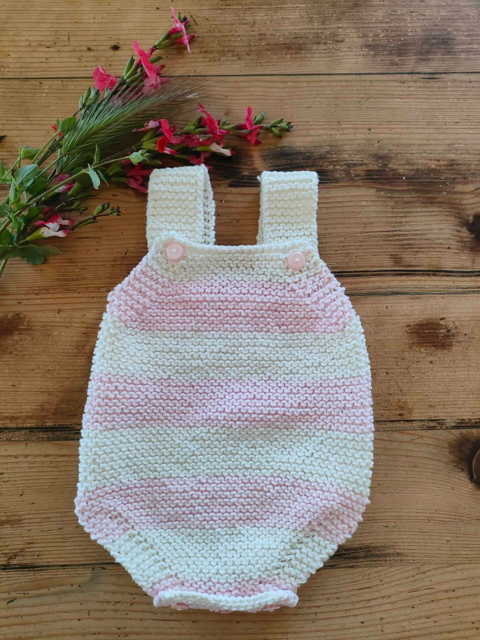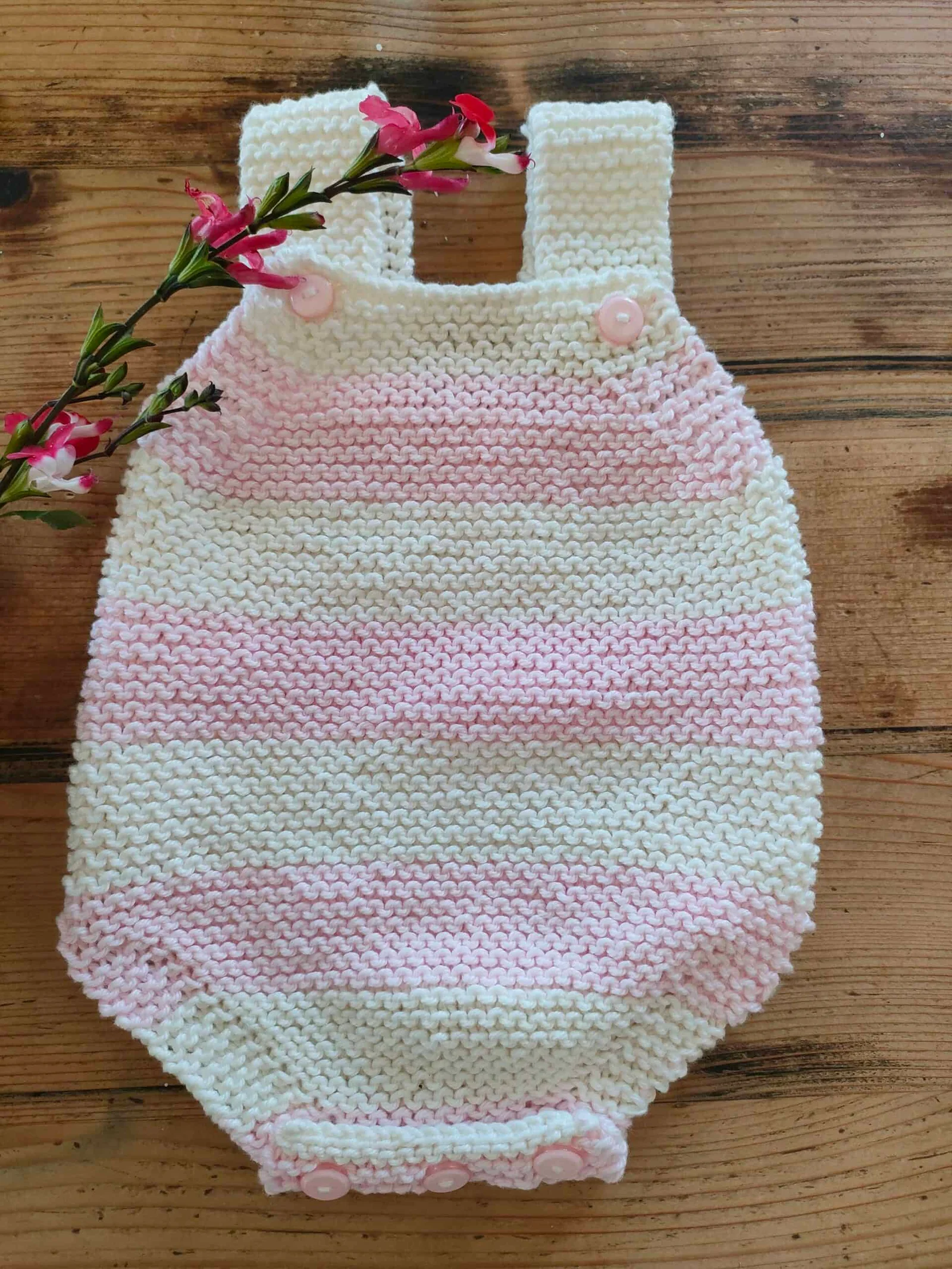 Adorable barboteuse tricotée à la main avec un coton spécialement conçu pour les bébés, très doux et confortable. Cette barboteuse se ferme grâce à des boutons au niveau des épaules (on peut croiser les bretelles dans le dos ou les laisser droites) et à l’entrejambes. Vous pouvez retrouver cette barboteuse dans d’autres tailles et d’autres coloris dans la rubrique « sur commande » « pour les bébés » « les barboteuses ».