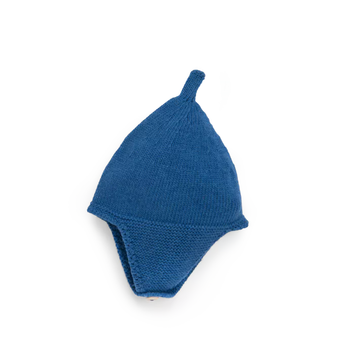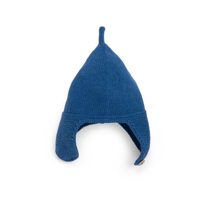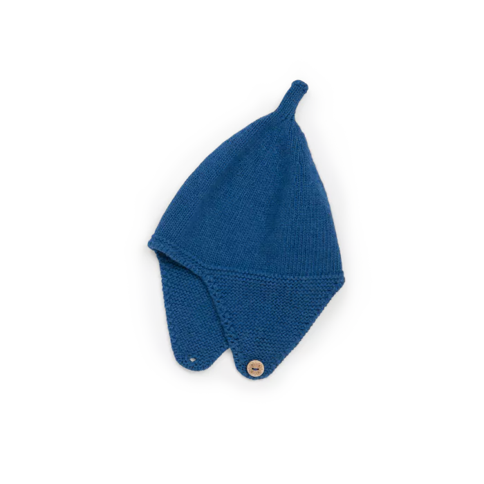 Béguin tricot laine au style rétro, bien couvrant pour tenir la tête et les oreilles au chaud. Fermeture par bouton bois. Chez Moulin Roty, les chaussettes sont fabriquées en France, les vêtements au Portugal et les mailles en Turquie. Pour une qualité si précieuse à la marque.