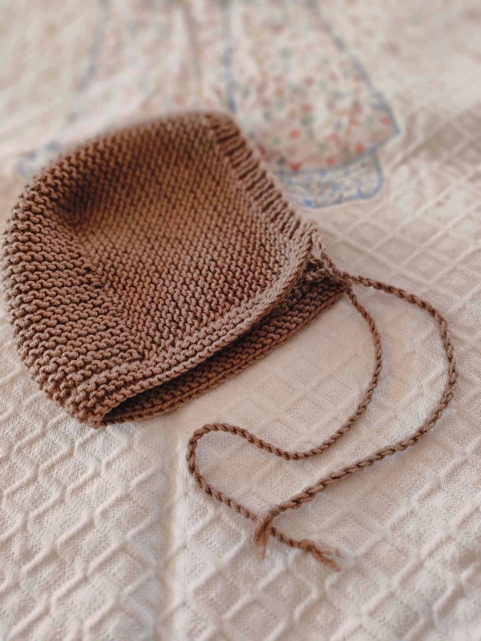 Adorable bonnet type « béguin » au style rétro, qui s’attache grâce à une cordelière faite à la main. Des côtes élastiques entourent la tête de bébé et une finition au point mousse épouse sa nuque. Le fil utilisé est une pure laine mérinos qui est absolument parfaite pour la peau de bébé. D’une grande douceur, elle régule en plus la transpiration, ce qui fait qu’elle peut être portée en toutes saisons. Je peux réaliser ce petit béguin en tailles 0-3 mois et/ou en 3-6 mois, dans une très grande gamme de couleurs que vous pourrez prendre le temps de choisir sur…