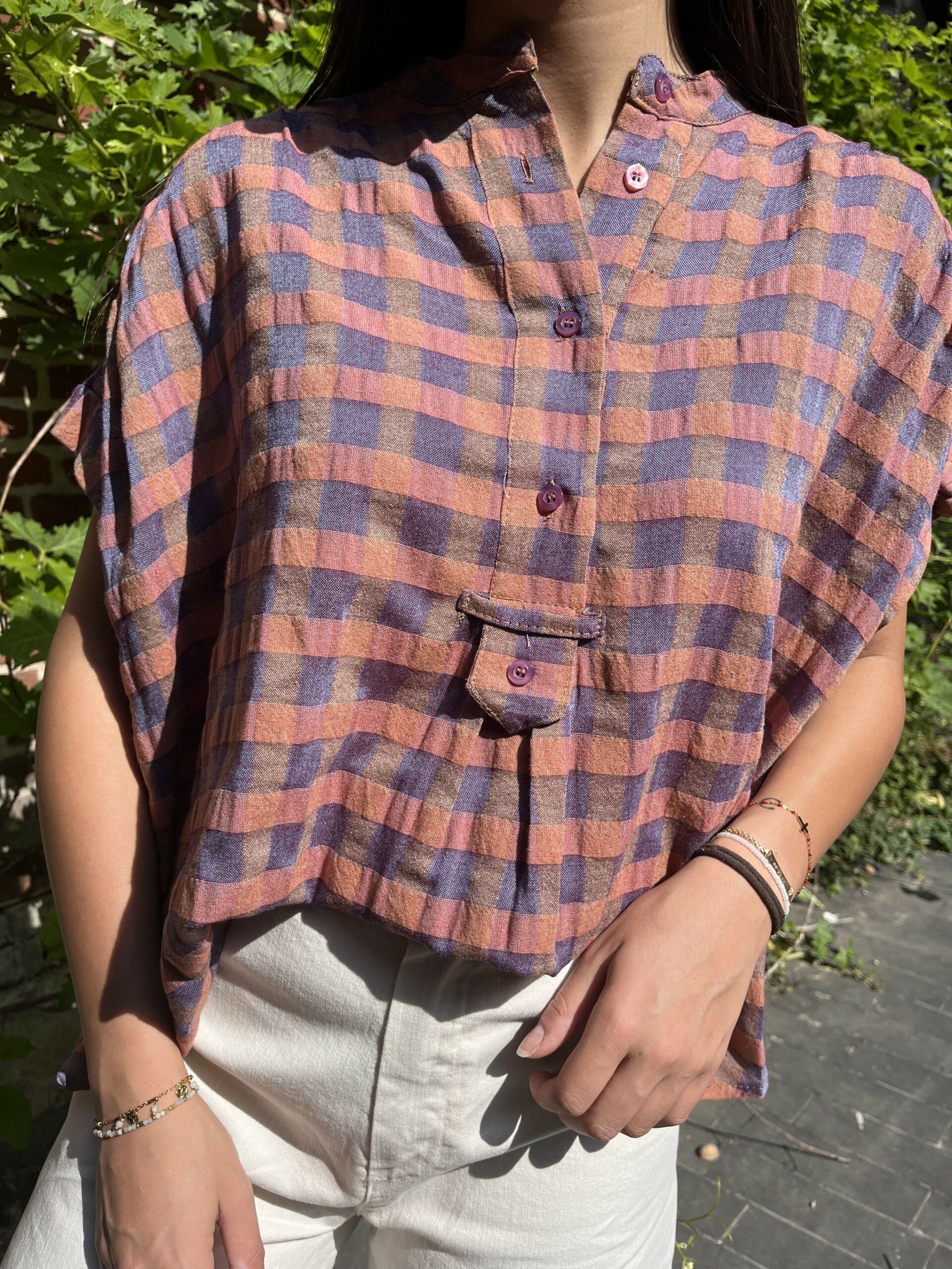 Découvrez la blouse vichy Terracotta de la sélection Bonnie Bonnie. Cette blouse aux couleurs rose et violet convient parfaitement pour l'été. Ces boutons au niveau du col vous permettent d'ajuster le décolleté. Ses manches courtes et sa coupe large vous apporteront fraicheur. Facile à associer avec un jean ou un pantalon en lin, cette chemise deviendra vite votre essentiel !