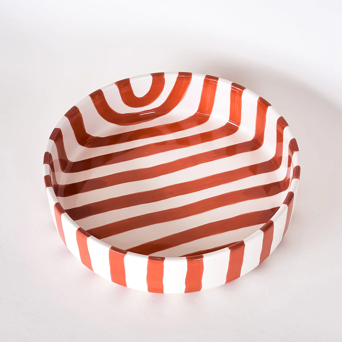 Cette pièce en céramique artisanale au design rayé orange et blanc de notre sélection évoque l’ambiance de la Méditerranée. Chaque bol est uniquement façonné et peint à la main, ce qui lui confère une esthétique unique et des subtilités de texture et de couleur propres à chaque exemplaire. Grâce à sa taille généreuse, elle s’adapte à de multiples usages : salade, fruits, plats de service ou présentation de mets. Le bord légèrement relevé ajoute une touche de finesse et de fonctionnalité. C’est un objet à la fois décoratif et pratique, idéal pour enrichir votre table ou votre cuisine avec une pièce à la fois fonctionnelle et expressive ! Retrouvez notre sélection chez Bonnie Bonnie !