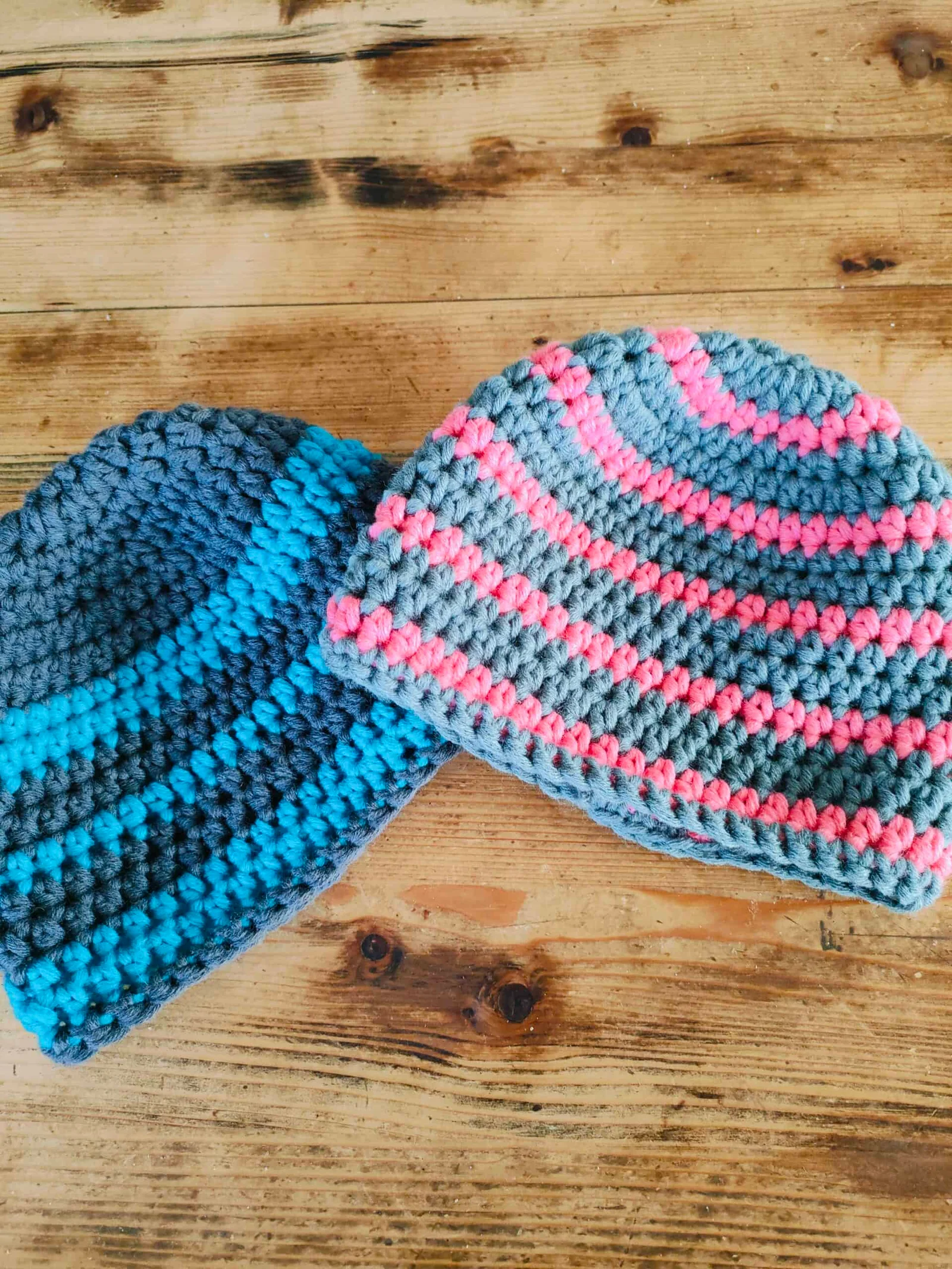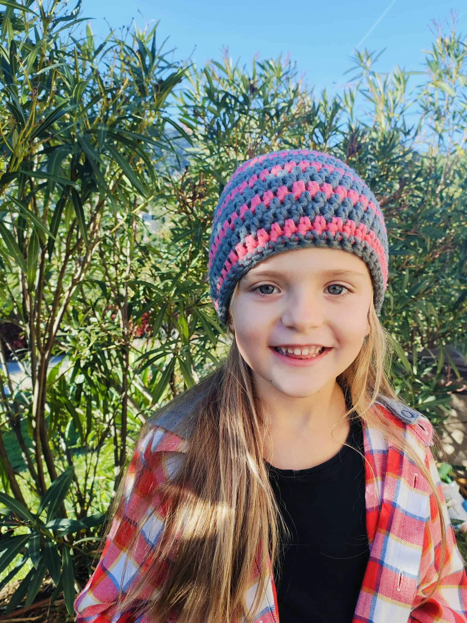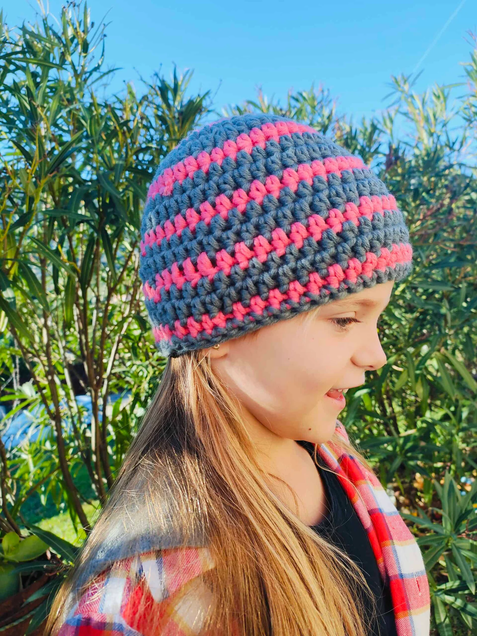 Bonnet crocheté à la main en mérinos et acrylique, fil spécialement conçu pour les bonnets. Tous les bonnets « snowboarder » sont uniques. Il n’y en a pas deux pareils. Je les réalise en fonction de mes envies et des couleurs qui me font craquer en fonction des jours ! Taille unique enfant.