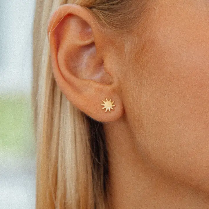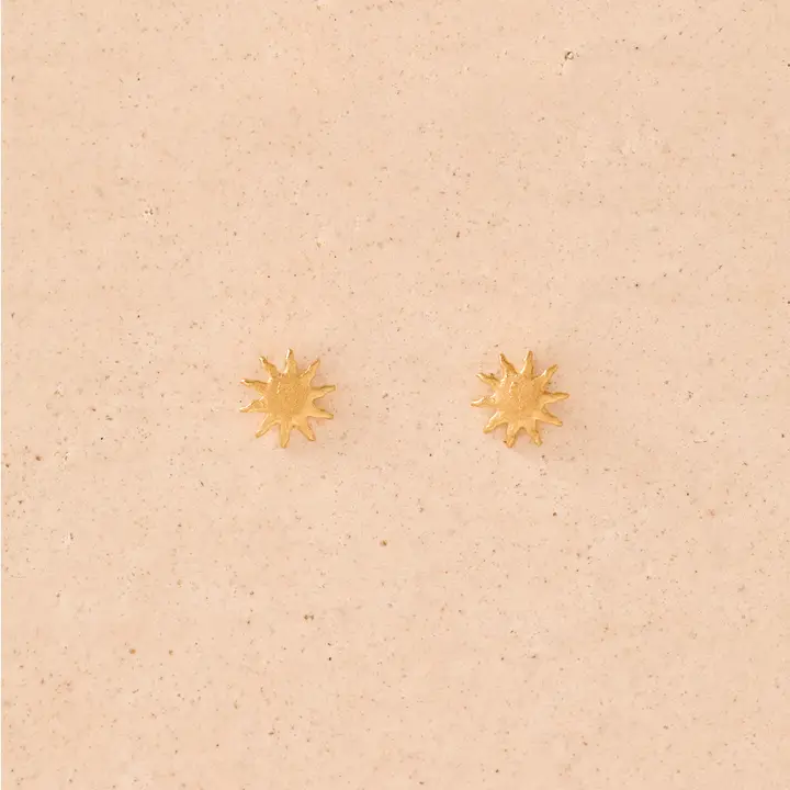 Clous d’oreilles dorés inspirés du soleil, plaqués or et fabriqués en France.