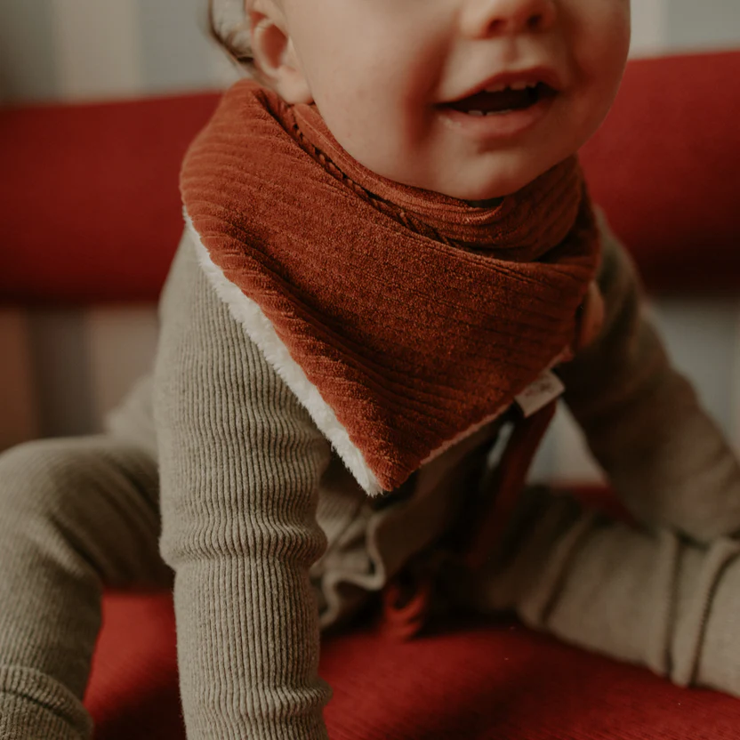 Cache-cou bébé réversible – Velours paprika Un cache-cou tout doux, chaud et stylé pour affronter les journées fraîches avec le sourire ! Ce cache-cou bébé en velours paprika de la marque RIEN QUE DES BETISES est entièrement confectionné à la main dans le nord de la France, avec des matières certifiées respectueuses de la peau fragile de bébé et de l’environnement ! Dès les premiers froids, ce tour de cou pour bébé devient un incontournable pour les balades, les trajets à la crèche ou à l’école. Stylé, pratique et douillet, il fait également un cadeau de naissance ou d’anniversaire parfait ! Retrouvez la marque RIEN QUE DES BETISES chez Bonnie Bonnie !