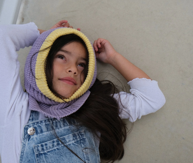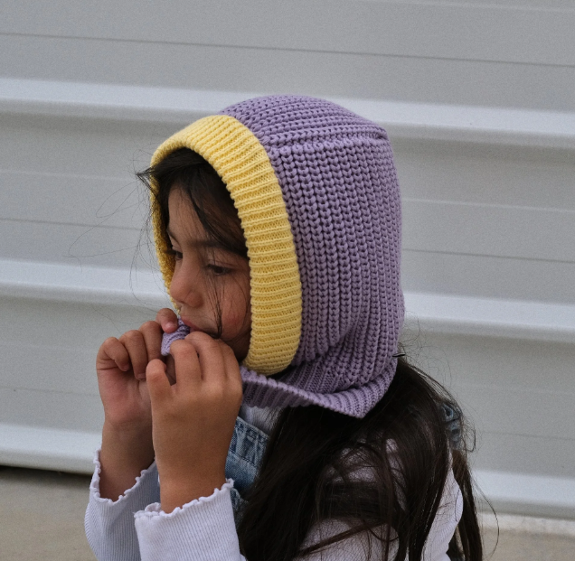 Avec son look lila et jaune crème, cette cagoule de notre sélection est prête à faire sensation tout en gardant votre poussin bien au chaud ! Fini les "ça gratte !" et les "ça pique !" – ici, confort total garanti ! Retrouvez notre sélection chez Bonnie Bonnie !