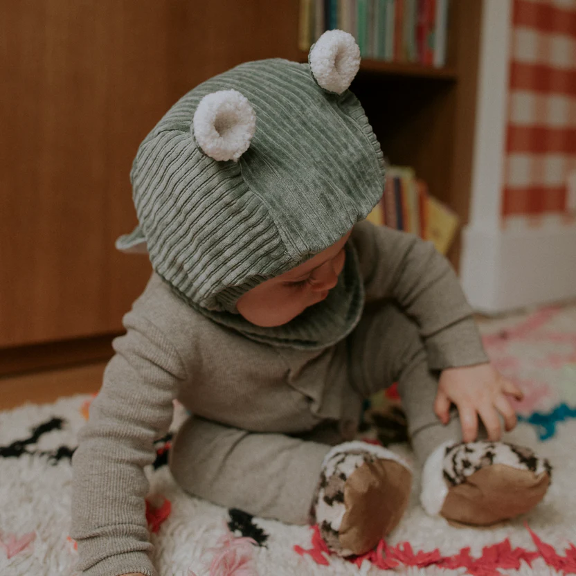 Avec sa forme, cette cagoule de la marque RIEN QUE DES BETISES, enveloppante protège la tête, les oreilles et le cou en un seul geste. Avec son velours côtelé kaki, elle affiche un look doux et élégant, facile à assortir à toutes les tenues ! Retrouvez la marque RIEN QUE DES BETISES chez Bonnie Bonnie !