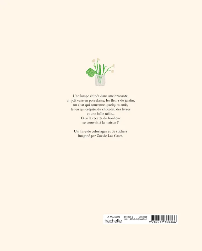Et si la recette du bonheur se trouvait simplement… à la maison ? Ce carnet de coloriage et de stickers imaginé par Zoé de Las Cases est une véritable ode au cocon, à la douceur du quotidien et aux petits plaisirs simples. À travers 64 pages d’illustrations à colorier et de stickers délicats, plongez dans un univers poétique fait de vases en porcelaine, de chats ronronnants, de bouquets fraîchement cueillis, de meubles chinés, de feu de cheminée et de gourmandises partagées. Un moment de détente, de créativité et d’inspiration à savourer chez soi.