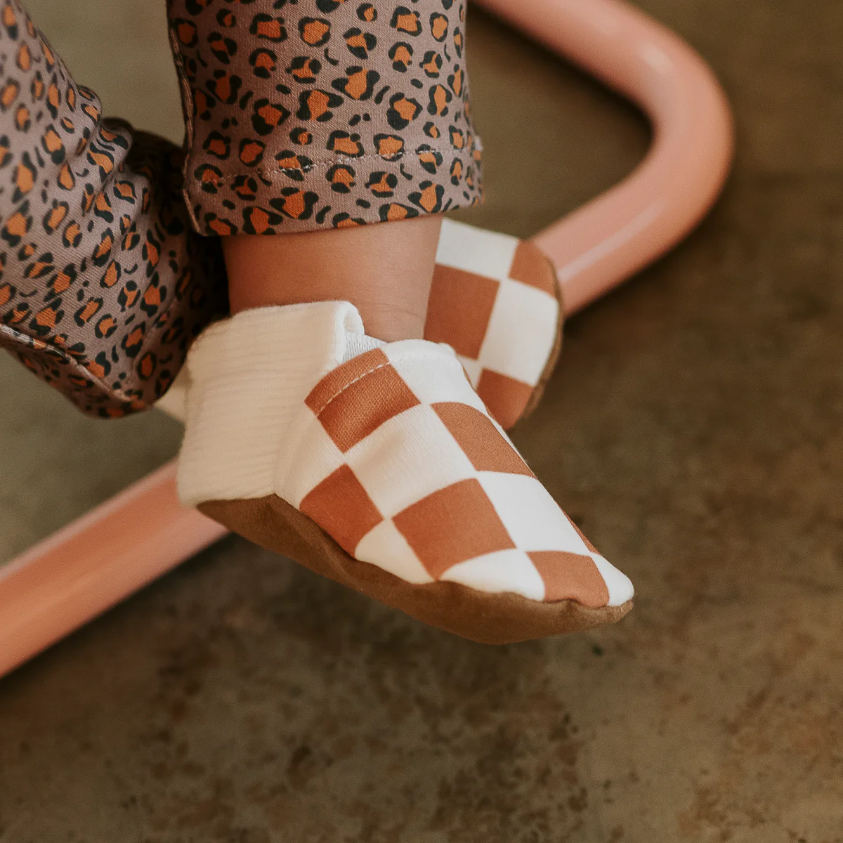 Joli chausson été coloris camel damier de chez Rien que des bêtises. Fabriqué en France