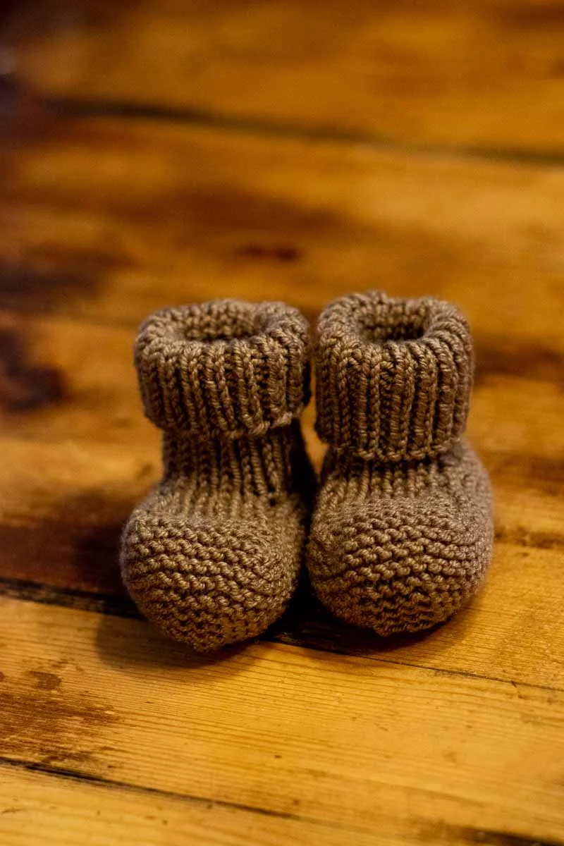 Chaussons laine et soie – coloris taupe – taille 0-6 mois