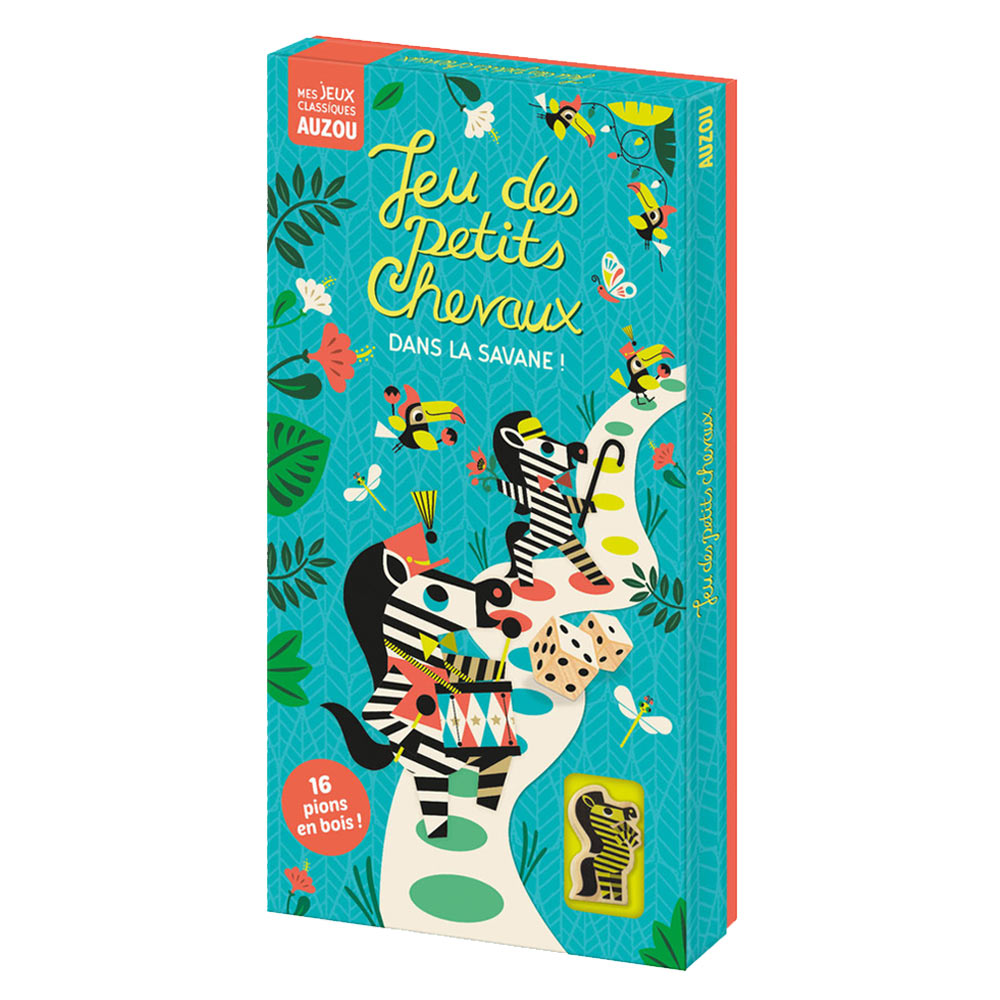 Un jeu de société classique revisité dans l’univers de la savane où les joueurs font courir leurs zèbres à travers le plateau pour atteindre la ligne d’arrivée. Ludique et convivial, il est parfait pour partager des moments en famille ou entre amis dès 3 ans.