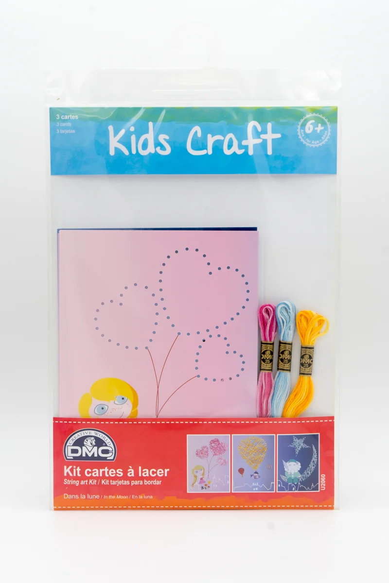 Une super activité pour les plus petits (dès 6 ans) où il suffira à l’enfant de faire passer le fil dans des petits trous, pour donner forme à de jolis motifs. Votre enfant sera très fier d’avoir pu participer à la déco de sa chambre de ses propres petites mains ! Une fois réalisés, ces tableaux pourront être affichés indépendamment, ou mis côte à côte pour réaliser un très joli triptyque. Chaque kit contient 3 cartes perforées (15 X 21 cm), 3 échevettes de Mouliné Spécial, 1 aiguille à bout rond, et une notice explicative.