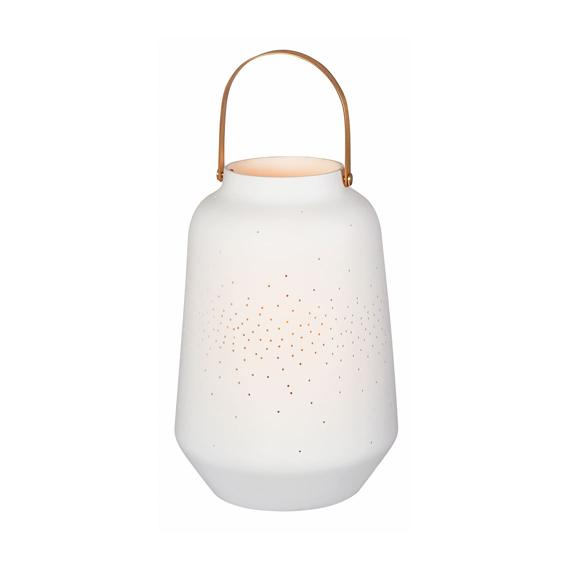 Lanterne grand format en porcelaine ajourée, poignée en laiton, pour une ambiance magique ! C’est le coup de cœur de la boutique ! Uniquement disponible en boutique ou en retrait, pas d’envoi possible.