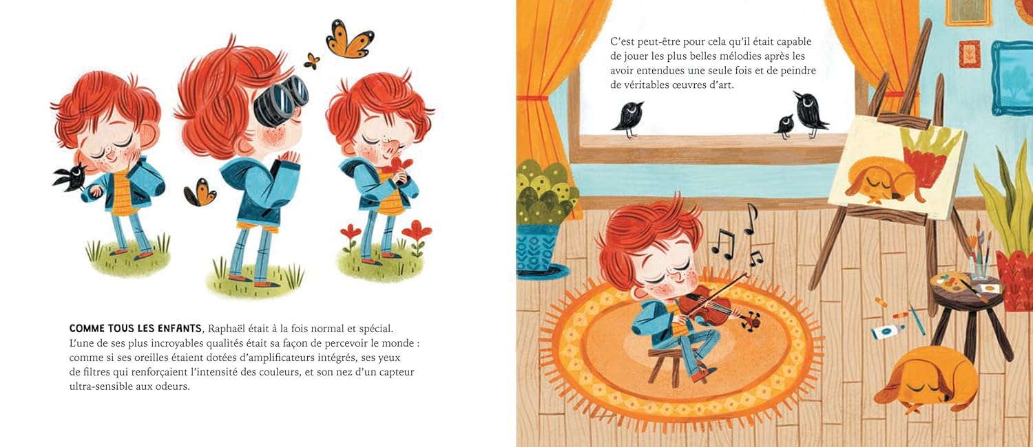 Raphaël perçoit le monde d’une façon particulière. Doté d’une grande sensibilité, il voit, entend et ressent tout très intensément ! Mais cela lui joue parfois des tours et certains camarades de classe se moquent de lui. Un jour, Raphaël trouve le moyen de se protéger en enfilant une armure. Sera-t-elle la solution à tous ses problèmes ? Découvre l’histoire poétique et profonde d’un petit garçon qui apprend à gérer ses émotions au quotidien, afin de faire de son hypersensibilité une force !