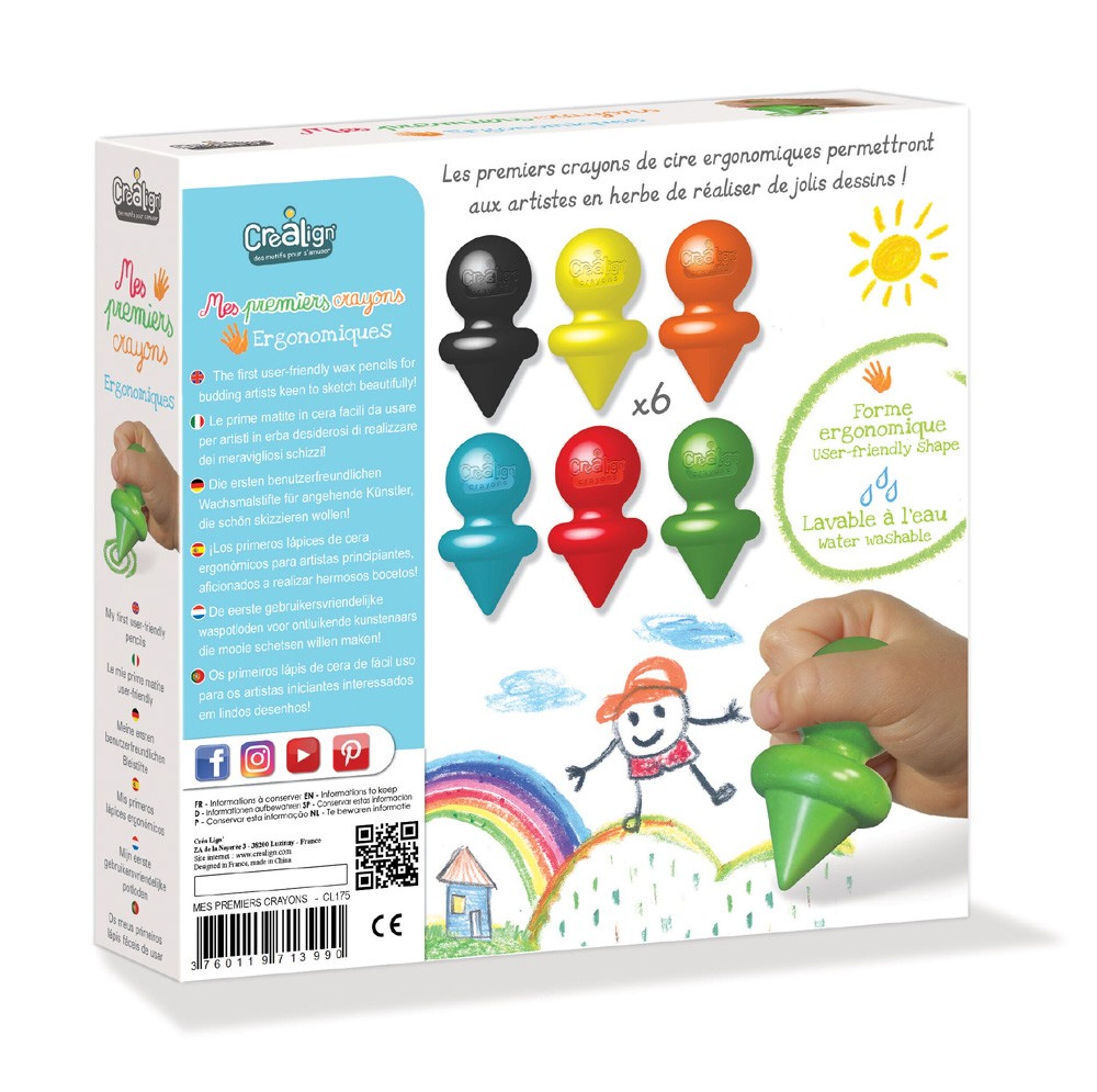 Les premiers crayons des tout petits ! Ces crayons de cire permettront aux artistes en herbe de réaliser de jolis dessins. Etant ergonomiques, ils assurent une excellente prise en main des petits. Pas d’inquiétude pour les parents, les couleurs laissées sur les mains ou sur les habits sont lavables à l’eau ! Les crayons de cire sont un outil créatif et amusant pour les enfants. Ils permettent de dessiner de manière colorée et originale tout en développant leur motricité fine. Les crayons de cire sont également très faciles à utiliser pour les enfants de tous âges. Ils offrent une grande…