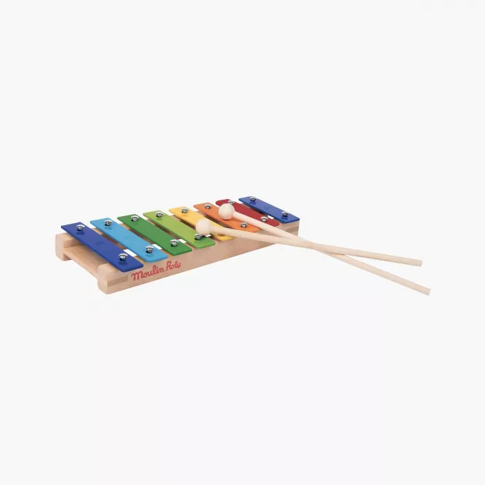 Pour petits musiciens, métallophone multicolore à 8 tons avec mailloche. Développe le rythme, la motricité et l’éveil musical des tout-petits.