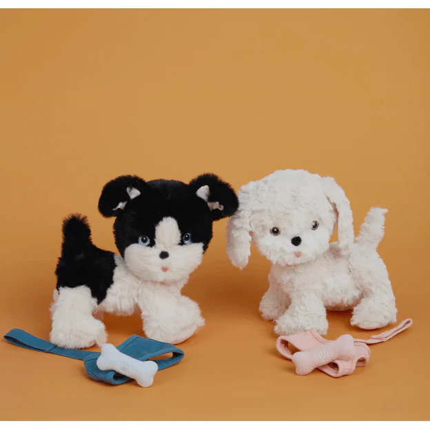 Fabriqué à partir d’un tissu en peluche recyclé doux avec des oreilles en velours pour se blottir, Lucky est entièrement articulé et peut se tenir debout, s’allonger et même s’asseoir !