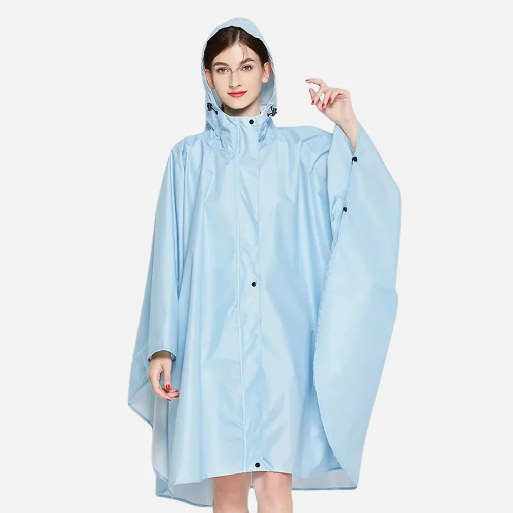 Affrontez les journées pluvieuses en toute sécurité, mais aussi avec style grâce au Poncho De Pluie Femme Bleu Clair.