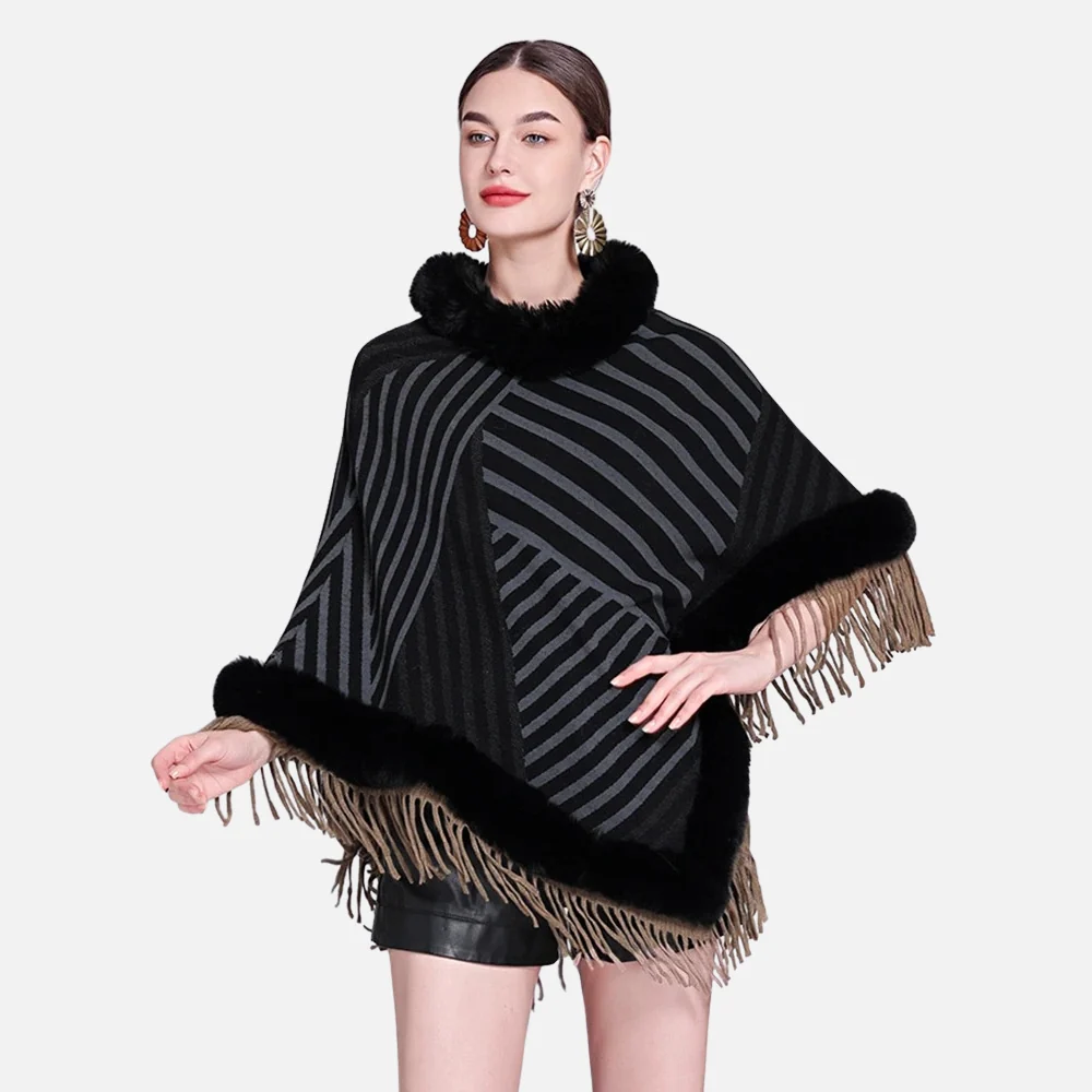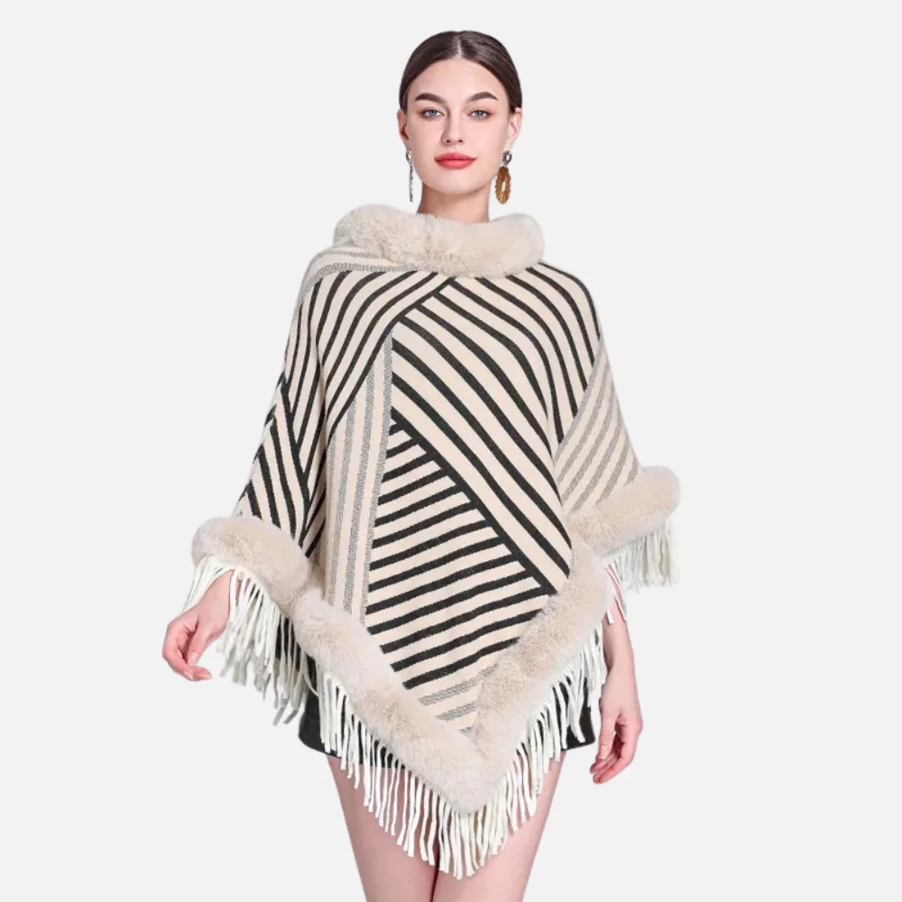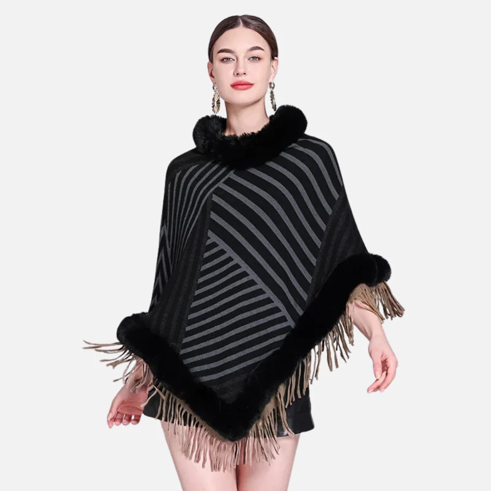 Poncho Fourrure à Rayures : L’élégance au cœur de l’hiver