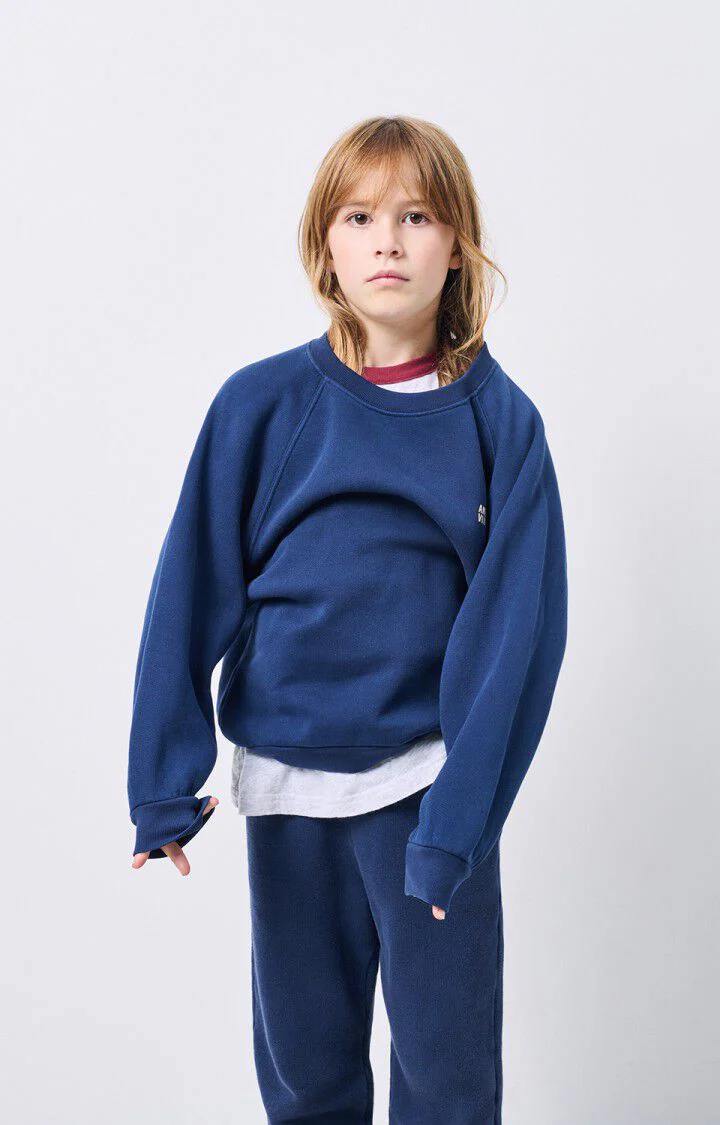 Sweat oversize enfant American Vintage Izubird, en molleton doux coloris Navy Vintage, avec manches raglan, col rond et logo imprimé. Confortable et stylé pour tous les jours.
