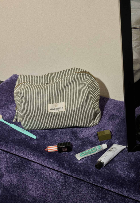 Découvrez la trousse de toilette de la marque GABRIELLE : élégante et fonctionnelle, elle combine coton imperméable et doublure soignée pour protéger vos essentiels. Compacte, elle embarque deux poches intérieures avec poignée pratique pour voyager sereinement ! Retrouvez la marque GABRIELLE chez Bonnie Bonnie !