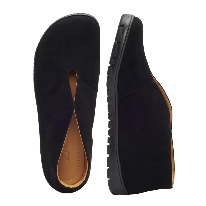 Thanks to the outdoor sole, which is absolutely flat and flexible, you can enjoy a natural running feeling with every step, almost as if you are barefoot on the way. This not only promotes healthy foot muscles and posture, but also ensures an incomparable wearing experience. In addition, TSEQA Black is surprisingly light and extremely breathable, which makes it ideal for long days. His simple, black premium suede and the design without lacing testify to a casual, informal character that fits seamlessly into any wardrobe.