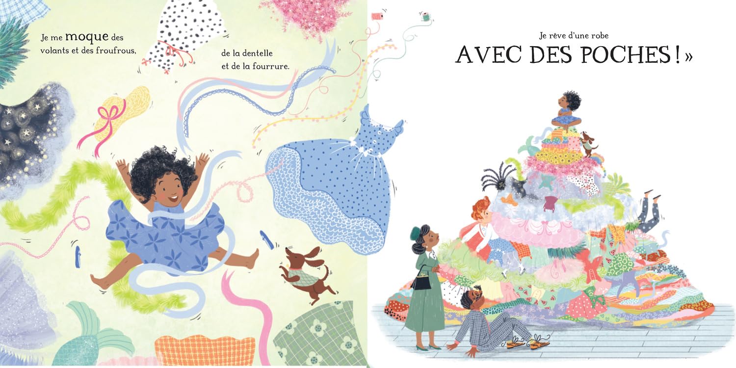 Lucie a besoin d’une nouvelle robe. Et au Palais de la Mode, il n’y a que l’embarras du choix. Des robes de sirène ou de magicienne, des robes à rubans, à paillettes ou à volants… Mais Lucie ne se soucie pas des froufrous ou de la dentelle. Elle veut une robe AVEC DES POCHES. Parce que les poches, on peut les remplir de jolies plumes, de précieux coquillages ou de formules magiques, autant de trésors pour vivre de belles aventures ! Une histoire amusante et moderne pour tous les enfants qui veulent plus que des paillettes, et pour libérer leur…